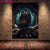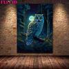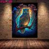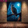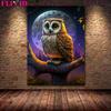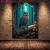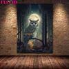 Geheimnisvolle Eulenkunst unter dem Vollmond, Wandölgemälde, magische Nacht, Katze, Kunstposter und Siegel