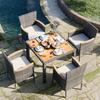 5-teiliges Outdoor-Terrassen-Essset, Rattan-Terrassenmöbelset mit Holztisch und 4 Stühlen mit weichen Kissen für Hof, Garten