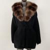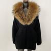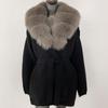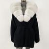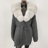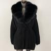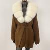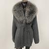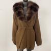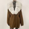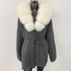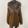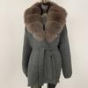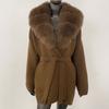 OFTBUY Herbst Damen Weich Lang Echter Fuchs Pelz Warm Gestrickter Mantel Gürtel Umlegekragen Oberbekleidung Lässige Pullover Jacke Locker Dame Elegant Lang