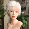 Kurze Natürliche Perücken mit Pony Weiches Mommy Hair Täglicher Cosplay-Gebrauch Silberweiß Ombre Lockiges Synthetisches Haar Hitzebeständige Faser