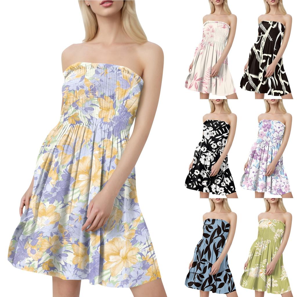 Damen Sommerkleider Mode Damen Casual Bandeau Blumendruck Ärmelloses Kleid