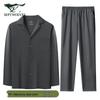 Erleben Sie Komfort und Stil mit diesem Herren-Pyjama-Set aus reiner Baumwolle mit offener Vorderseite und langen Ärmeln. Dieses Pyjama-Set aus hochwertiger Baumwolle bietet optimale Atmungsaktivität und Weichheit und ist somit perfekt für eine erholsame Nachtruhe oder zum Entspannen zu Hause.. Das einfarbige Design bietet einen zeitlosen und vielseitigen Look, während die offene Vorderseite einen Hauch von Eleganz verleiht. Ideal für alle, die Komfort schätzen, ohne auf Stil verzichten zu müssen.
