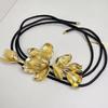 Goldener Tulpenblumengürtel: Retro Schwarze Lederbauchkette mit Rock Jeans Akzent
