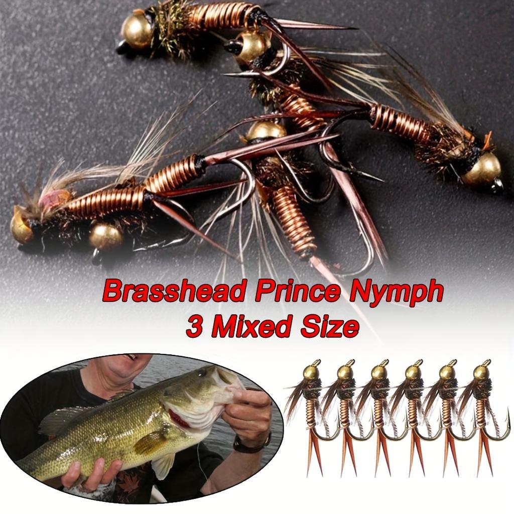 6 Stück Messing Kupfer Perlenkopf Schnell sinkende Nymphen Scud Bug Wurm Fliegen Forelle/Barsch Fliegenfischen Köder