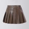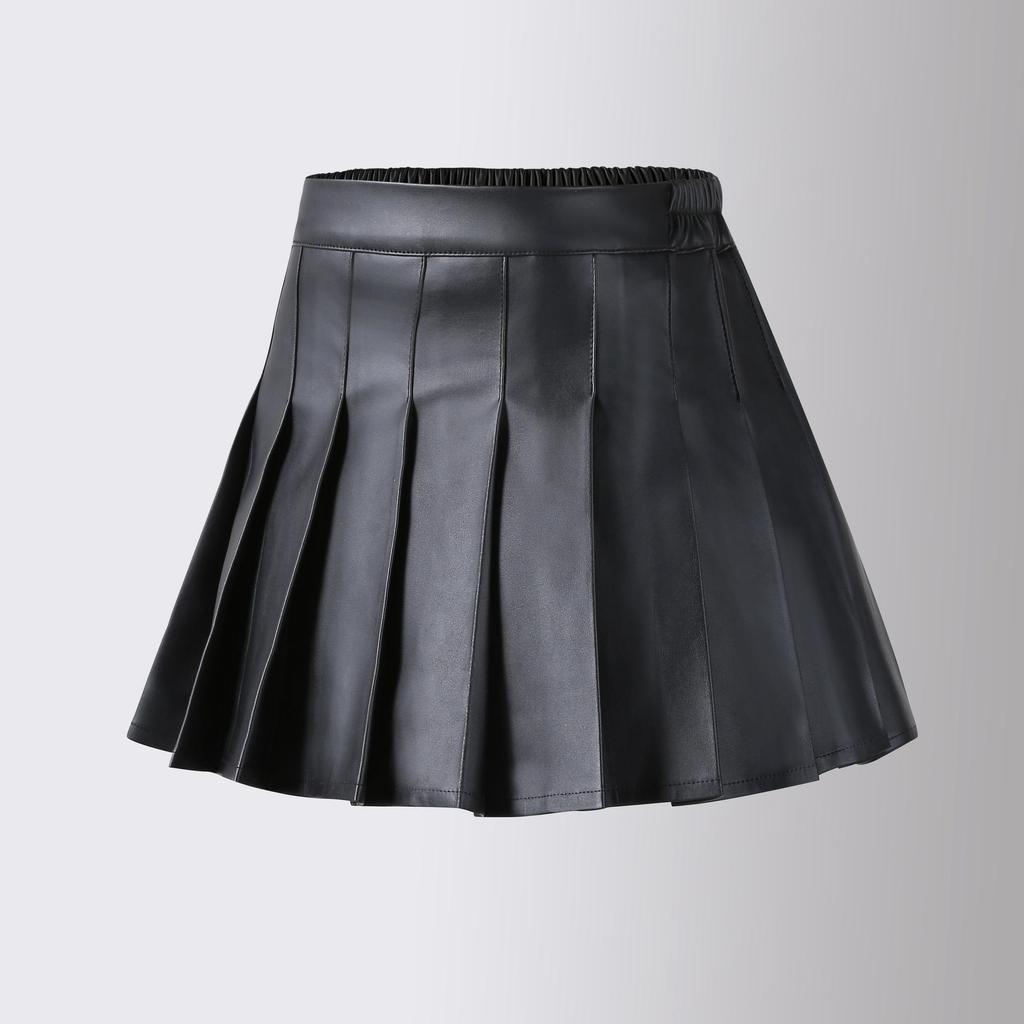 Schwarzer PU-A-Linien-Faltenrock für Mädchen mit hoher Taille und Hose für Herbst und Winter