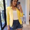 Werten Sie Ihren Stil mit diesem eleganten und modernen Slim-Fit-Blazer auf, der für die zeitgenössische Frau entworfen wurde.. Dieser Blazer aus hochwertigem Polyester bietet eine bequeme und schmeichelhafte Passform, perfekt für einen urban-schicken Look.. Das leichte Material sorgt für Vielseitigkeit und macht es zu einer idealen Wahl für jede Jahreszeit, insbesondere für die frische Atmosphäre des Frühlings.. Ob schick für das Büro oder lässig für einen Ausflug, dieser Blazer verleiht jedem Outfit mühelos Raffinesse.
