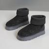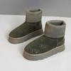 BR9981 2024 Damen Koreanische Mid-Cut Schneestiefel: Samtgefüttert, Einfarbig, Warm & Lässig