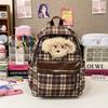 Retro-karierter Welpen-Rucksack im College-Stil für Herbst/Winter – stylische All-Match-Schultasche für Mädchen