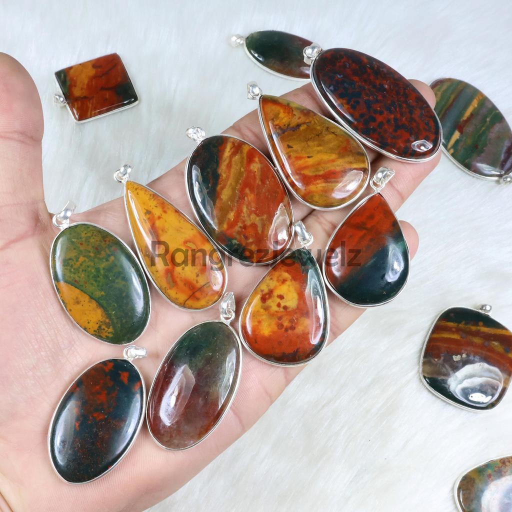 Bloodstone Pendant Mix Shape Sterling Silver Pendant Red Bloodstone Gemstone Pendant Bezel Pendant Bloodstone Necklace Jewelry