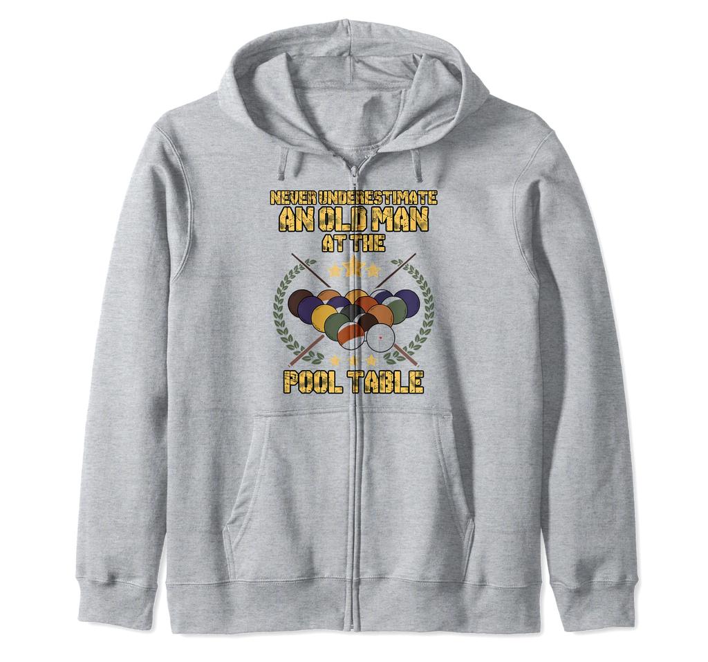 Never underestimate the old man with the snooker billiard cue zip hoodie