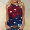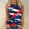 Women's Fashion Casual T-Shirt Round Neck Sleeveless Independence Day Printed Vest Top