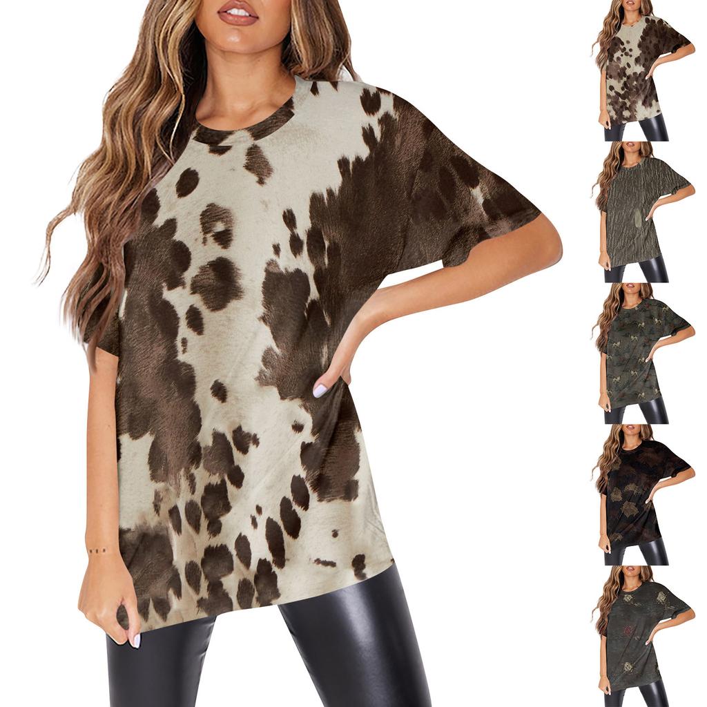Damenmode O-Ausschnitt Kurzarm Arbeitskleidung mit Taschen Bedruckte Oberteile Sommeroberteile für Frauen