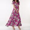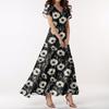 Lässiges Damenkleid mit V-Ausschnitt, kurzen Ärmeln und hoher Taille, Retro-Blumenblatt-Print