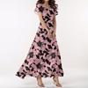 Lässiges Damenkleid mit V-Ausschnitt, kurzen Ärmeln und hoher Taille, Retro-Blumenblatt-Print