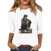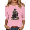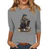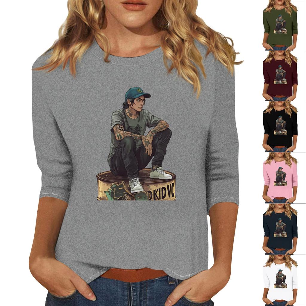 Women's Fashion Casual 3/4 Sleeve Street Print Round Neck Pullover Top