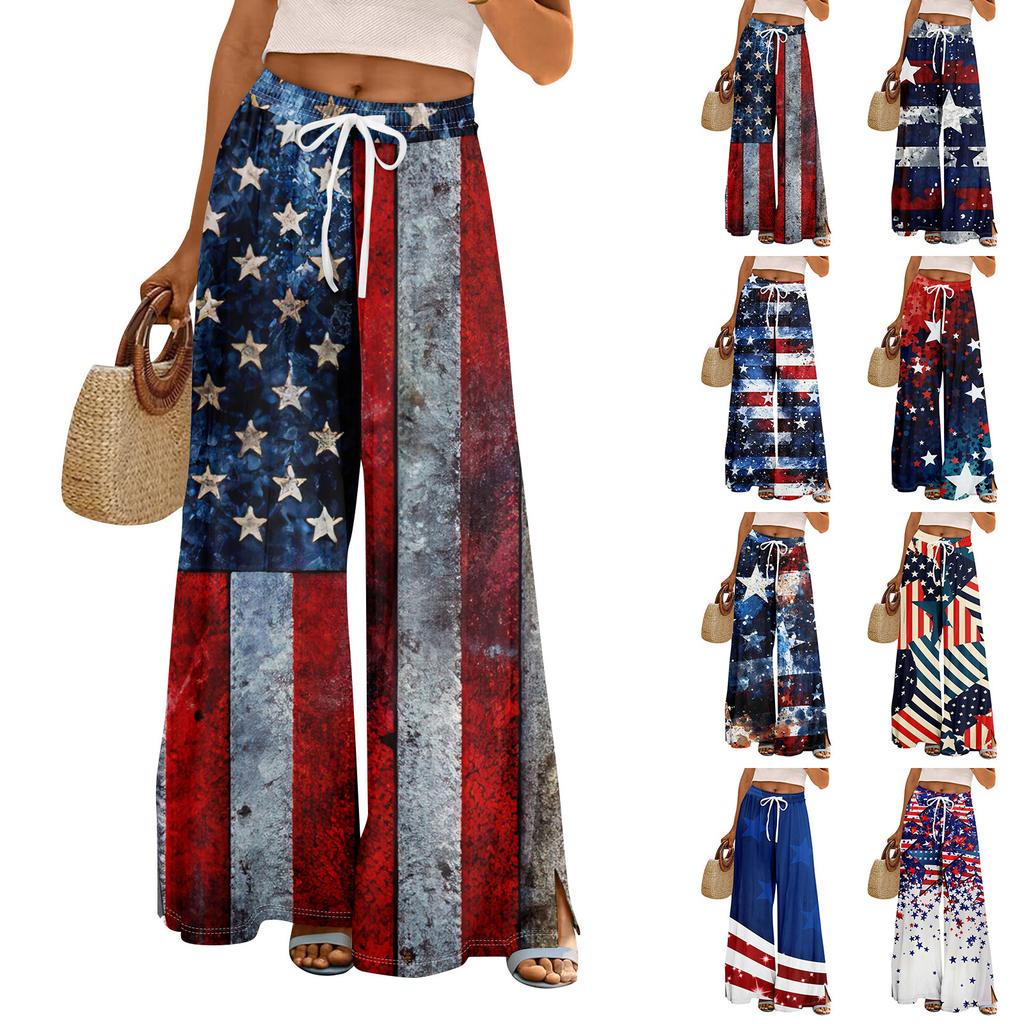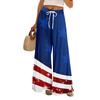 Damen Sommer Boho Palazzo Hose Hohe Taille Weites Bein Independence Printing Freizeithose mit Taschen