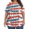 Damenmode, Übergröße, lässig, kurzärmliges Oberteil mit Rundhalsausschnitt und Falten vorne zum Unabhängigkeitstag-Aufdruck