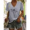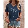 Summer V-neck 3D Dandelion Dragonfly Pattern Printed Top Fashionable Casual Short Sleeved Women's T-shirts