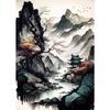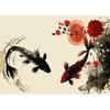 Chinesische Landschaft Paar Vögel Wald Berg Fluss Koi Karpfen Fisch Kunst Poster Drucke Leinwand Malerei Wandkunst Bild Heimdekor