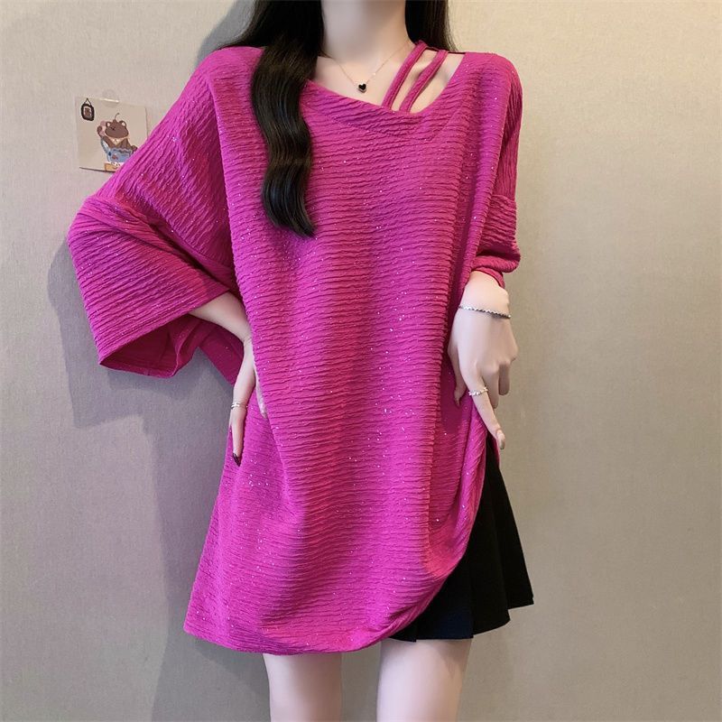 Large Size Shiny Texture Irregular Short Sleeved T-shirt Women's Summer New Loose Top