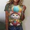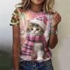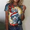 Damen Niedliches Katze Kurzarm T-Shirt Weihnachten Tiere Aufdruck Rundhals T-Shirt 2024 Mode Kleidung Sommer Lässig Oversize