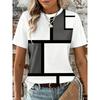 Damen T-Shirt Grafik Freizeit Kurzarm Rundhalsausschnitt Standard Oberteile Alltag Patchwork Druck Rot Blau Khaki Sommer