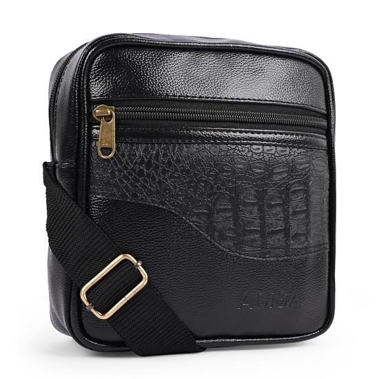 ADISA Faux Leather Unisex Sling Cross Body Travel Office Messenger Bag (MS9012-BLA)
