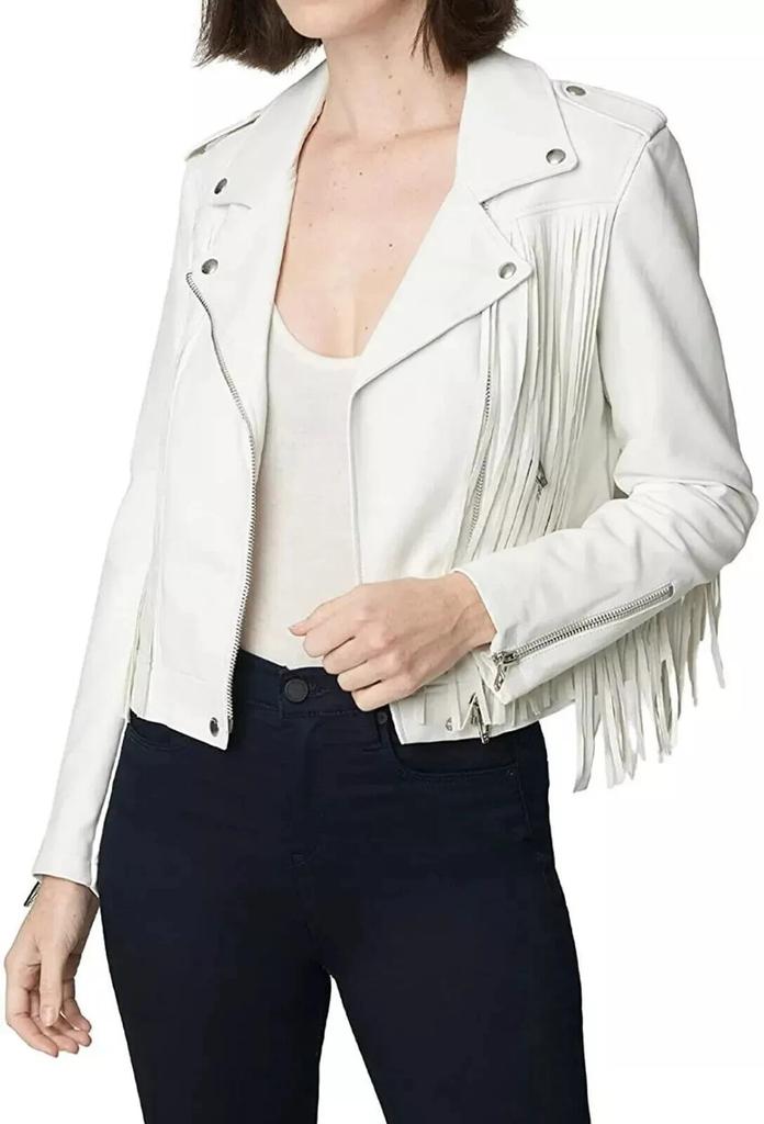 WHITE New Women's SheepSkin Leather Jacket Western Style Handmade Fringe Jacket