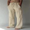 Men's Casual Trousers New Solid Colour Jogging Trousers Cotton Linen Loose Casual Drawstring Multi-pocket Trousers