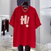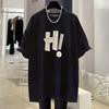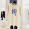 Neuer Sommer Koreanischer Stil Hong Kong Stil Design Buchstaben Trendige Große Version Locker Grau Kurzarm T-Shirt für Damen Mittellang