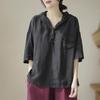 Kurzärmeliges T-Shirt, Baumwolle und Leinen Damenbluse, Kapuzenpullover, Lockeres und schlichtes Damen-T-Shirt