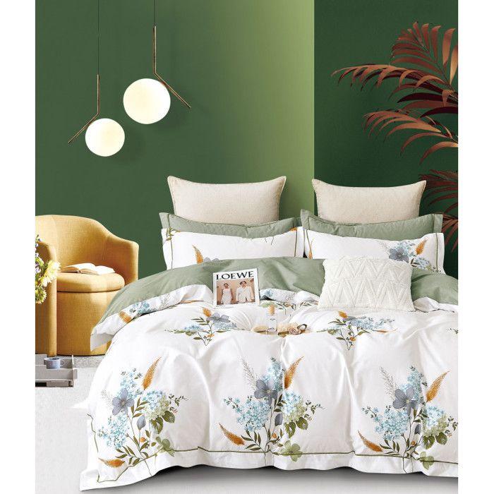 Drap housse Palace pur coton teint lavé 63 fils/cm² Vent du sud - Palace Cèdre - 140 x 190 cm bonnet de 35 cm
