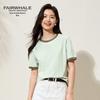 Girl butterfly printed pink T-shirt, high heels printed short sleeved shirt, summer fashion