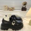 British style small leather shoes women's loafers single shoes thick heel platform spring and autumn fashion round head new height-increasing Japa