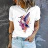 Sommer Damen T-Shirt Vogel Print Lässig Kurzarm 3D T-Shirt Mode Streetwear Rundhals Pullover Weiblich Übergröße Kleidung
