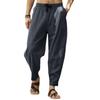 Lockere, lässige Sporthose für Herren in Übergröße aus Baumwolle und Leinen mit Kordelzug, Hip-Hop-Laternenfüßen