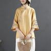 Sommer Retro Baumwolle und Leinen Bedruckte Bluse Damen Lockerer Pullover Retro Lässig Kurzarm T-Shirt