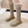 Pelz Plateau Damen High Heels Designer Elegant Mittelhoch Leder Schuhe Frau 2025 Trend Winter Pumps Fad Chelsea Stiefel Frau