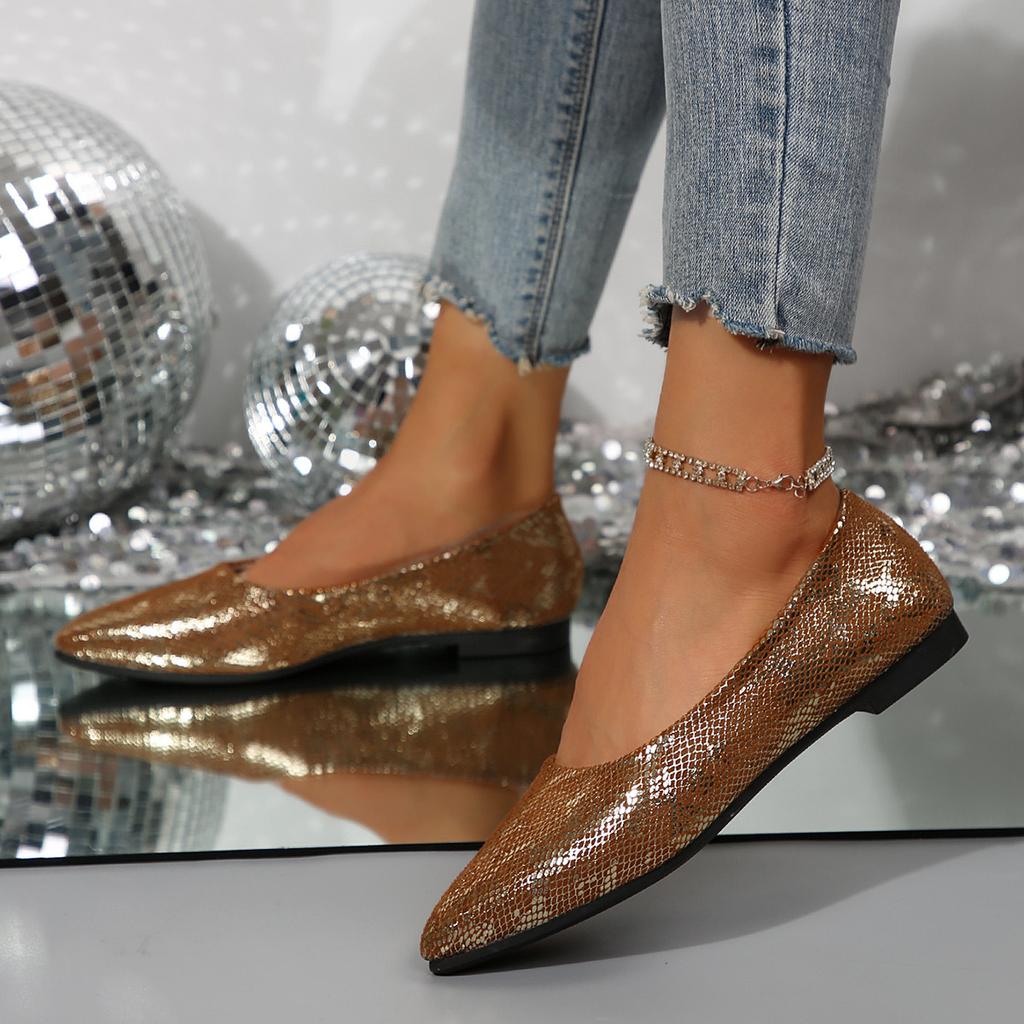 Große Größe spitze Zehen flacher Ausschnitt Einzelne Schuhe Damen 2025 neu niedriger Absatz bequem Freizeitkleidung Doudou-Schuhe Damen