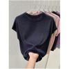 Damen Sommer Rundhals Dünnes Lockeres T-Shirt Einfarbiges Design Stricktops