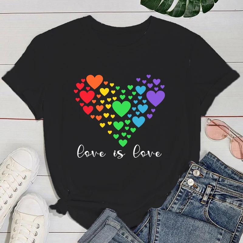(Premium T-Shirt)Damenmode Sommer T-Shirts LGBT Love Is Love Letter Print T-Shirts Weibliche Kurzarm Grafik T-Shirt Casual T