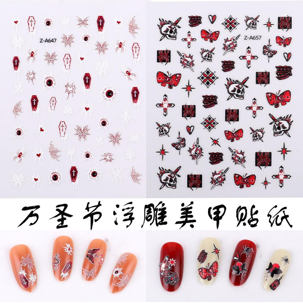 5D Geprägter Nail Art Sticker Halloween Cartoon Spinnennetz Geist Kürbislaterne Nagel Klebeaufkleber