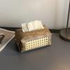 Tragbarer Rattan-Design Holzmaserung Taschentuchboxhalter PU-Leder Retro-Stil Papierserviettenhalter Serviettenbox Desktop-Aufbewahrung