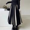 Herbst Frühling Strickrock Damen Hochtailliert Grün Plissee Röcke Frau Kontrastfarbe Vintage Rock