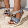 Keilsandalen mit Metallschnalle für Damen Peep Toe Elastischer Riemen Plateausandalen Frau 2025 Sommer Casual Espadrille Sandalias Mujer