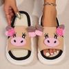 Kawaii Cartoon Kuh Hauspantoffeln für Damen Sommer Mode Leinen Plateau Hausschuhe Frau Dicke Sohle Rutschfest Schlafzimmer Slipper 2025