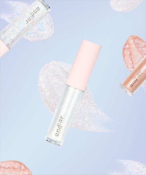 ANDEAR Real Glitter Liquid 3colors features a holographic glitter product characterized by vibrant, large and small pearl particles. The densely packed fine pearl particles shine transparently, making it a perfect point item for eye makeup. It applies clearly without a color base, making it suitable for daily makeup. With three colors available, you can choose according to the mood you want to create.