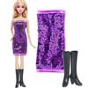 Fashion Doll Dress Shiny Dress for 30cm Doll 11.5'' Sequin Mini Gown with High Heels Shoes Boots Kids Toy Accessories Gift