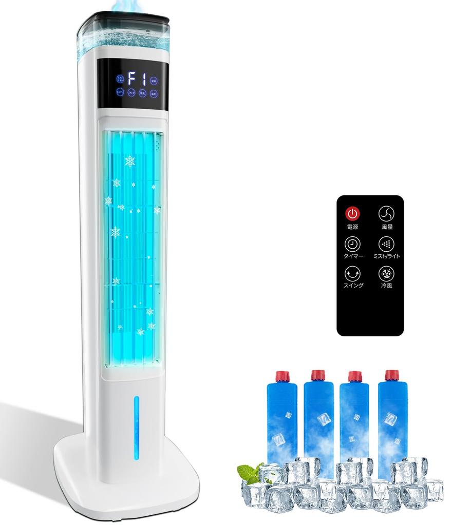 [Humidifier & Air Cooler - 2 in 1] Our air cooler is not just a simple air cooler, but also has a humidifier function due to its unique design. The design is modern and simple, which is especially good news for customers with small home spaces. In summer and autumn, you can use the air cooler function to eliminate the heat, and in spring and winter, you can use the humidifier function to keep the humidity of the environment we are in at an appropriate level. This air cooler can be used all year round and does not require any troublesome storage. [Powerful cooling at a height of 95cm!!] In order to solve your heat problems more quickly, we have adopted a wide outlet and also included 4 ice crystals. By putting these in the tank together with water, we can achieve efficient cooling. With a powerful and energy-saving DC motor, the maximum wind speed can reach 6m/s, quickly cooling and humidifying the surrounding air, ultimately delivering a cool and comfortable breeze. (Note: The humidifier will automatically turn off when there is no water. It will also sound an alarm if there is no water in the lower tank.) [Ultra-quiet sleep mode & mood light included] When set to the lowest airflow when you go to bed, it is quiet at only 30db, making it ideal for light sleepers. In addition, this fan has a built-in mood light, which not only gives you a visually cool feeling, but also creates a romantic atmosphere with colorful mood lights. It will help you and your loved ones spend sweet time every day. [24H timer, quiet, energy-saving] This tower fan is equipped with a timer function that can be set in 1-hour increments up to 24 hours. It prevents you from falling asleep while using it or getting too cold while you are sleeping, and also helps save on electricity bills. The tower fan is low noise, about 45dB or less, so you can use it with confidence as it will not disturb your sleep, reading, or work. Note: Please note that the operating noise may vary depending on the strength of the airflow. In addition, due to the DC motor, the maximum power consumption is 18W. If the electricity company's rate is 31 yen/kWh, the estimated electricity cost per hour is 0.47 yen for 18W! The lower the power consumption of the product, the more energy-efficient it is and the lower the electricity bill! [60° automatic swing & 3-level airflow adjustment] This tower fan's air cooler can automatically swing 60° left and right, delivering a comfortable breeze over a wide area. A comfortable cool breeze blows from all directions. The wind direction can be finely adjusted, so you can blow the wind in the direction you like. It can also be used in large rooms used by multiple people, such as living rooms and dining rooms. In addition, the wind volume can be adjusted according to the weather, which helps save on electricity bills. [After-sales service guarantee] We provide comprehensive after-sales service so that our customers can purchase with confidence. All products come with a 2-year warranty, and if any problems occur during use, we will respond within 12 hours. Choosing us is not just choosing a high-quality product, but also choosing long-term peace of mind and trust. [Humidifier & Air Cooler - 2 in 1] Our air cooler is not just a simple air cooler, but also has a humidifier function due to its unique design. The design is modern and simple, which is especially good news for customers with small home spaces. In summer and autumn, you can use the air cooler function to eliminate the heat, and in spring and winter, you can use the humidifier function to keep the humidity of the environment we are in at an appropriate level. This air cooler can be used all year round and does not require any troublesome storage.