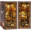 FUNPOLA Holzpuzzle, 3D-Puzzle, magischer Zug, Book Nook Kit, Booknook-Holzpuzzle, DIY-Miniatur-Puppenhaus mit LED-Licht, Bücherregalhalter, Buchstützen